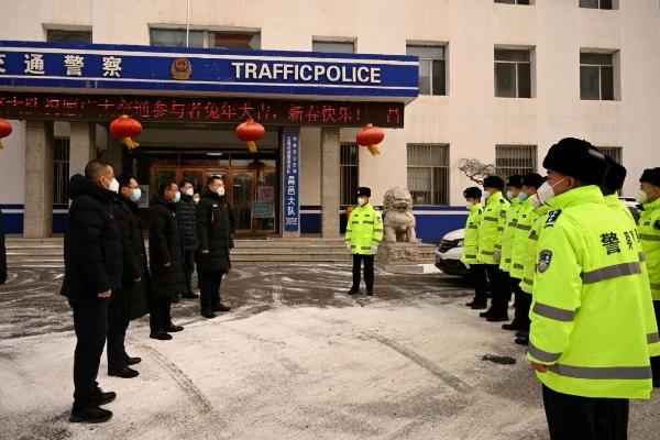 赵洲洋、崔湛最后来到昌邑交巡警大队,充分肯定交巡警大队在过去的一年艰苦奋斗、严格执法,为群众出行创造良好的道路交通环境中作出的贡献和取得的成绩。勉励大家发扬连续作战的敬业精神,加强重点路段、重点部位、重点时段巡逻管控,严查酒驾醉驾等各类交通违法行为,严防各类交通事故发生,全力护航节日道路交通安全,让群众出行更加安心更加舒心。