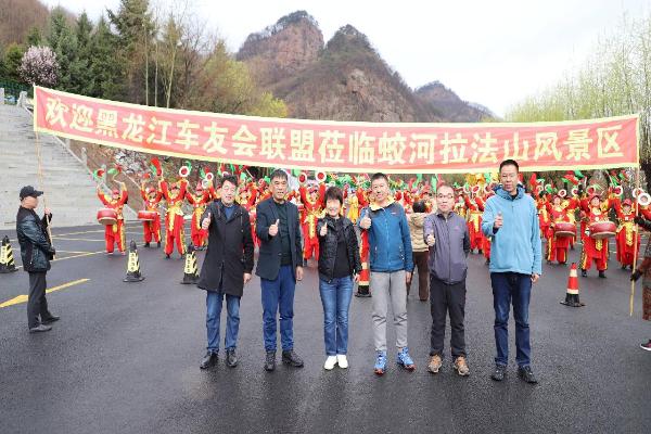 活动中,来自黑龙江车友会联盟团队60辆车200 余人走进拉法山景区开展踏青、赏花、登山活动。