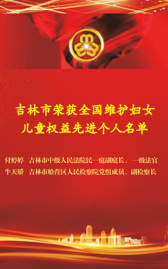 近日,全国妇联发布《全国妇联关于表彰全国维护妇女儿童权益先进集体和先进个人的决定》,吉林市3个集体和2名个人分别荣获全国维护妇女儿童权益先进集体和先进个人称号。