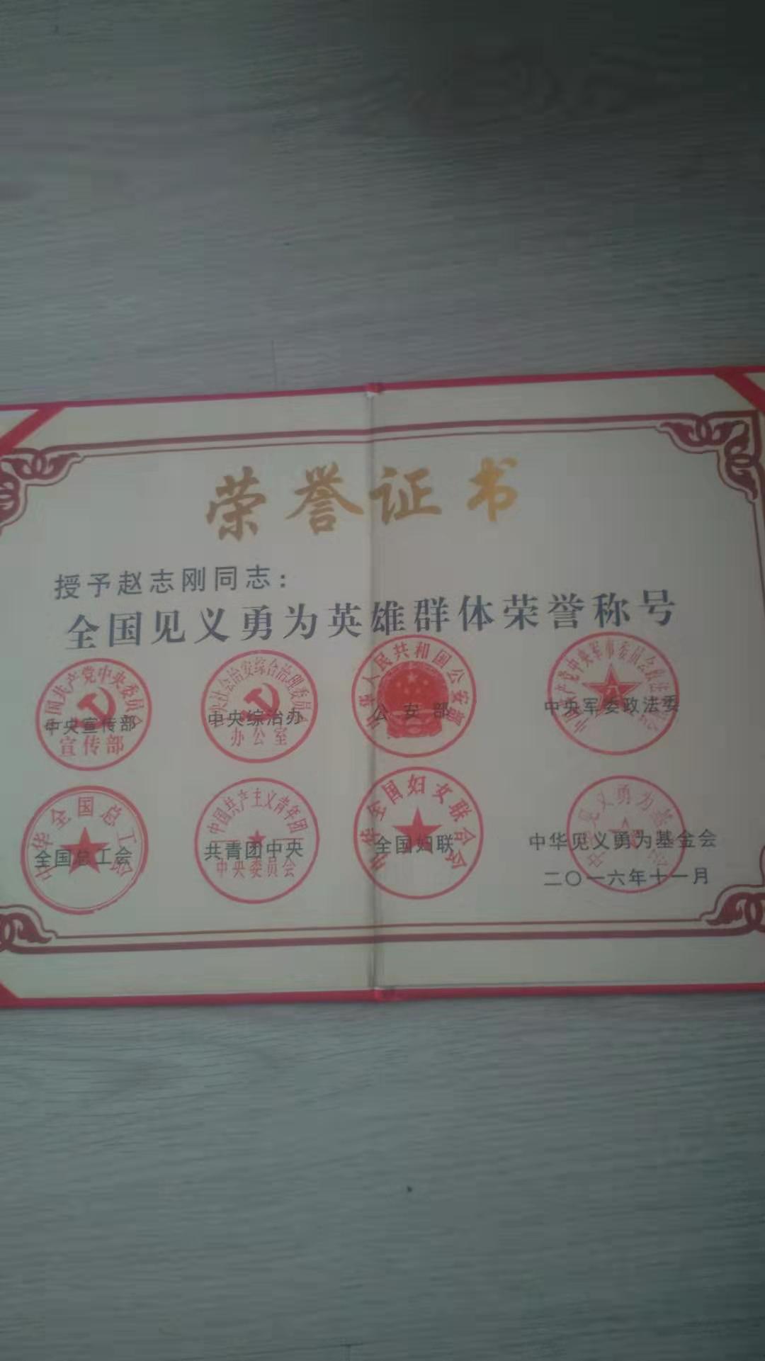 时隔六年,那个血淋淋的场面仿佛就在眼前,面对穷凶极恶的歹徒,赵志刚没有丝毫退缩,不忘正义,坚守初心,有责任,有担当,他的牺牲留给社会的是宝贵的精神财富,是满满的正能量!鉴于赵志刚的表现,他于2013年被评为见义勇为先进个人,2014年被评为吉林好人标兵,2015年被评为第四届吉林省道德模范、全国道德模范提名奖,2016年被评为吉林省见义勇为模范、全国见义勇为英雄群体荣誉称号,2017年追授烈士。