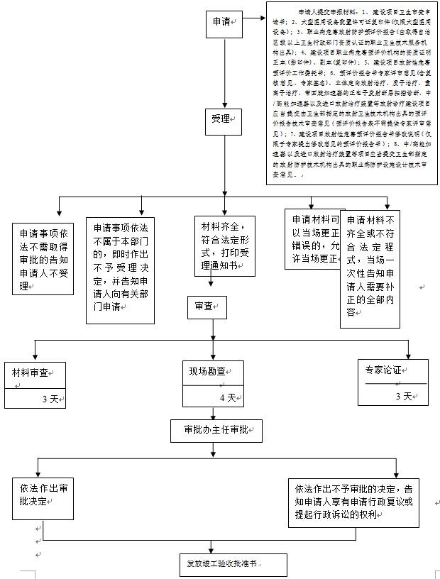 3.决定责任:符合规定条件、依法作出准予许可的,于10个工作日内发给《医疗机构放射性职业病危害建设项目