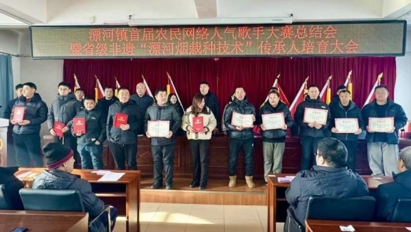 近日,漂河镇对首届农民网络人气歌手大赛获奖选手和省级非遗“漂河烟栽种技术”优秀传承人进行了表彰。