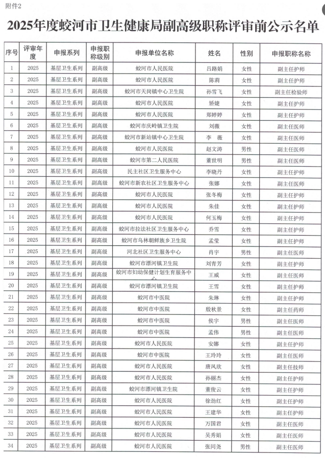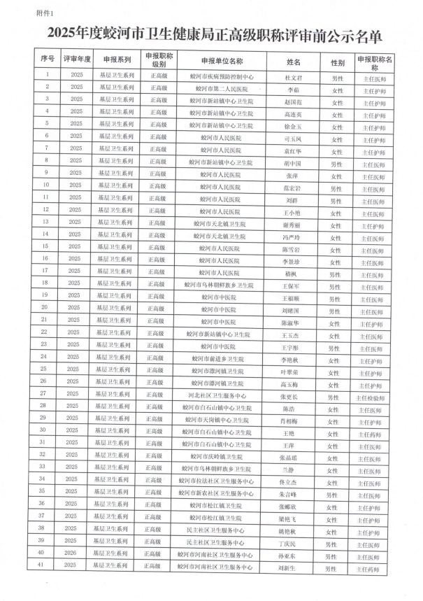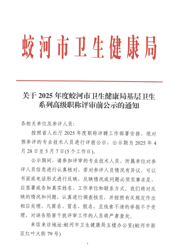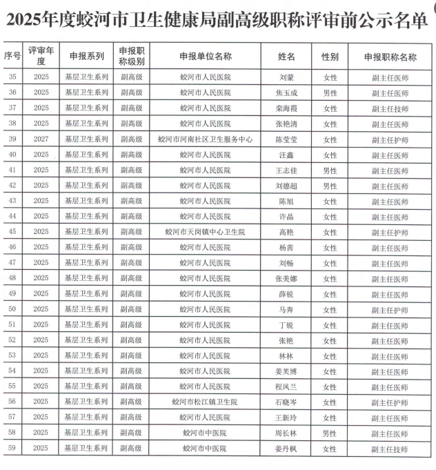 关于2025年度蛟河市卫生健康局基层卫生系列高级职称评审前公示的通知