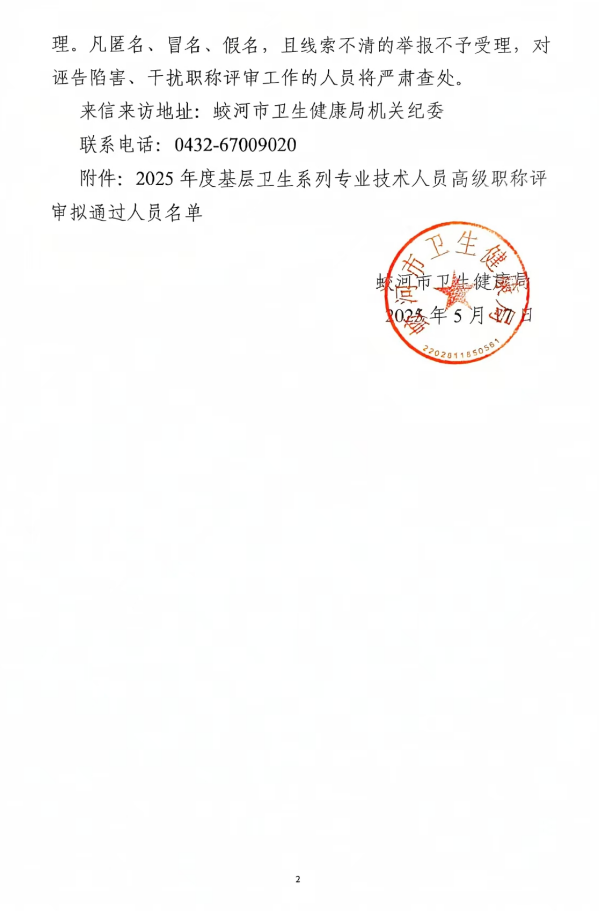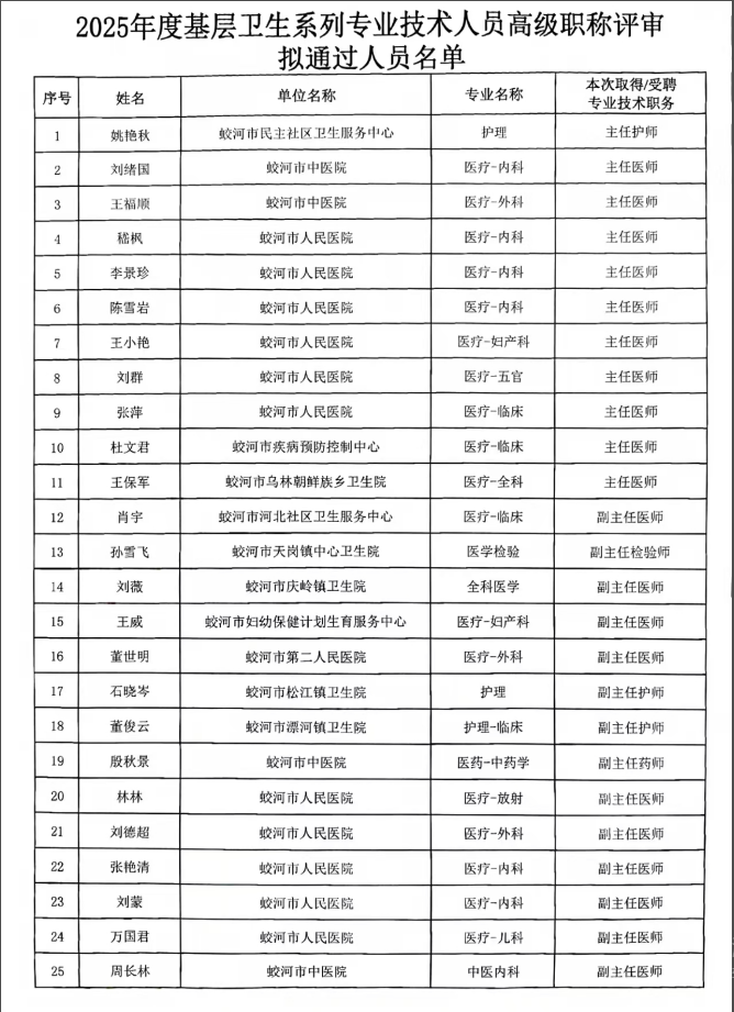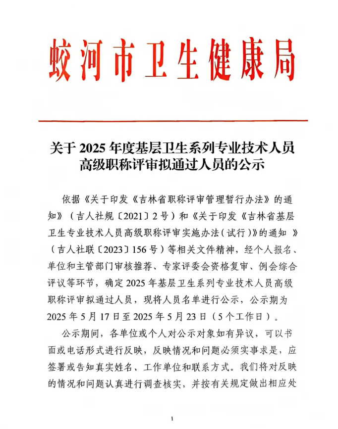 关于2025年度基层卫生系列专业技术人员职称评审拟通过人员的公示