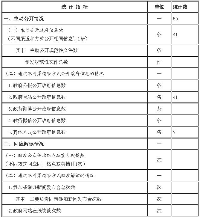 (二)通过不同渠道和方式公开政府信息的情况。在公开的50条信息中,政府网站公开政府信息数为41条,占比为82%。从以上数据可以看出,网站是信息公开的最重要途径。