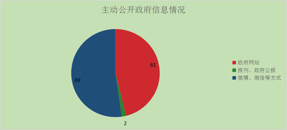 (一)通过政府网站主动公开政府信息61条,通过报刊、政府公报主动公开政府信息2条,通过微博、微信主动公开政府信息69条,合计132条信息。