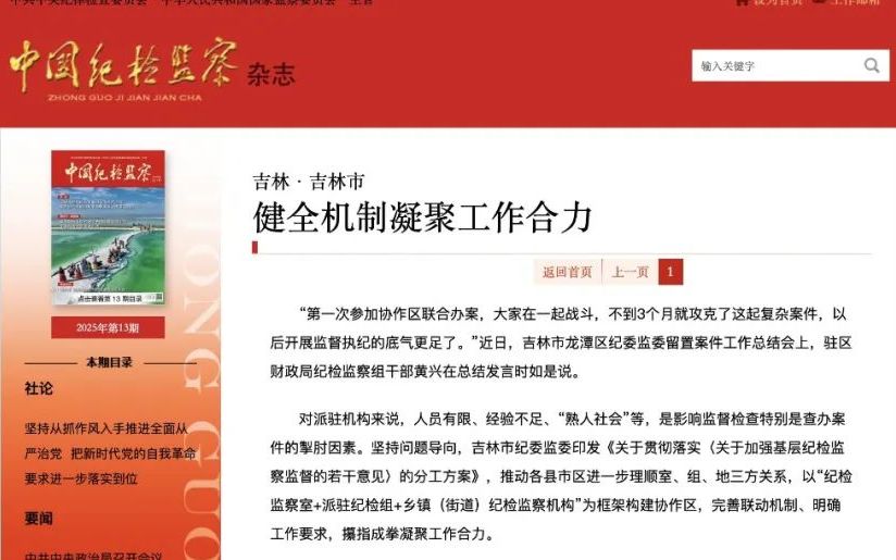 《中国纪检监察》杂志:吉林市:健全机制凝聚工作合力