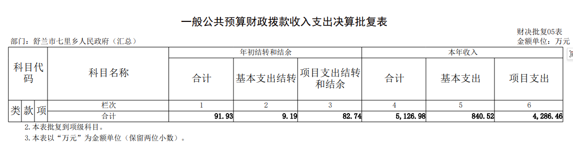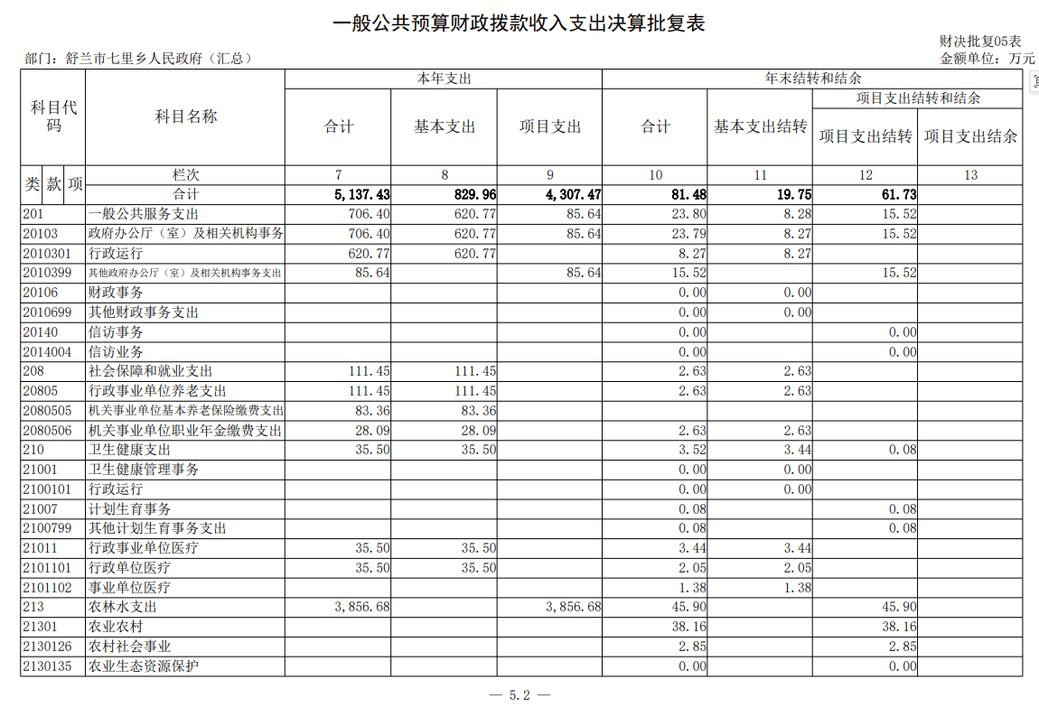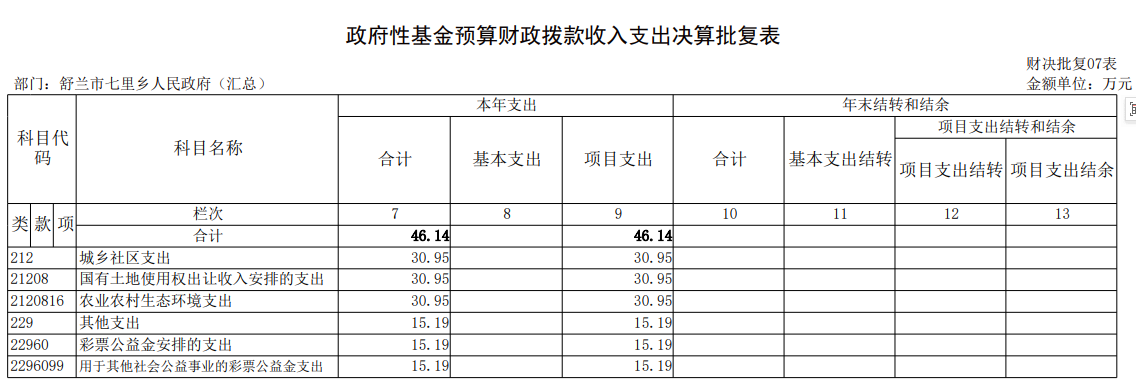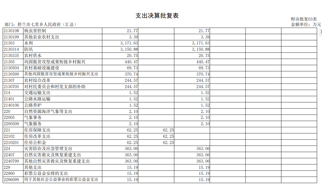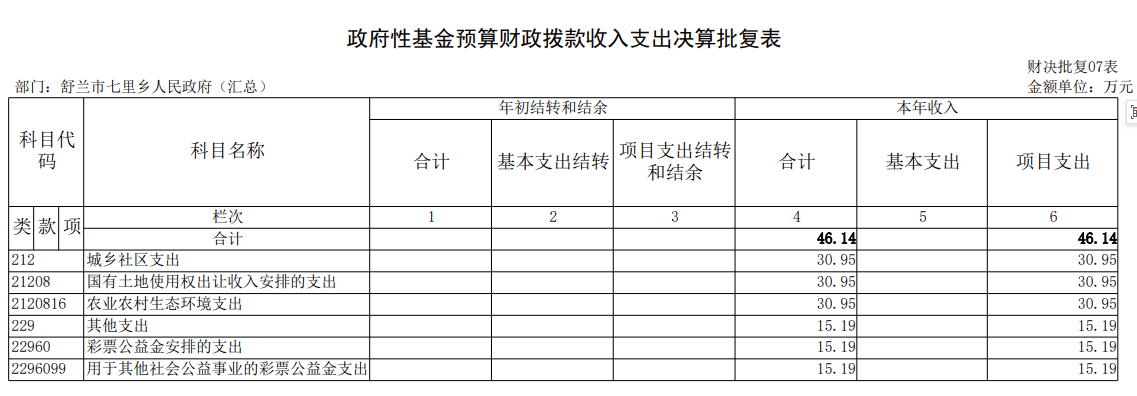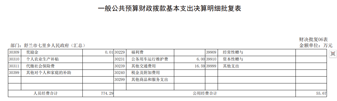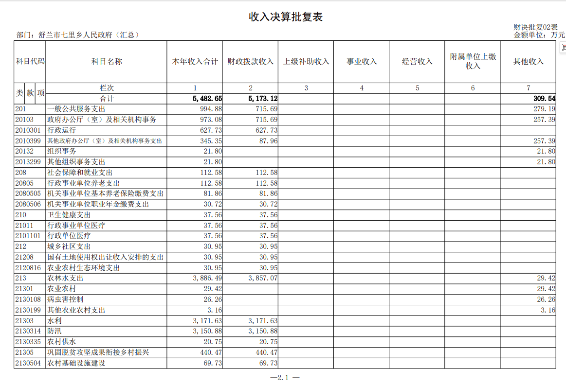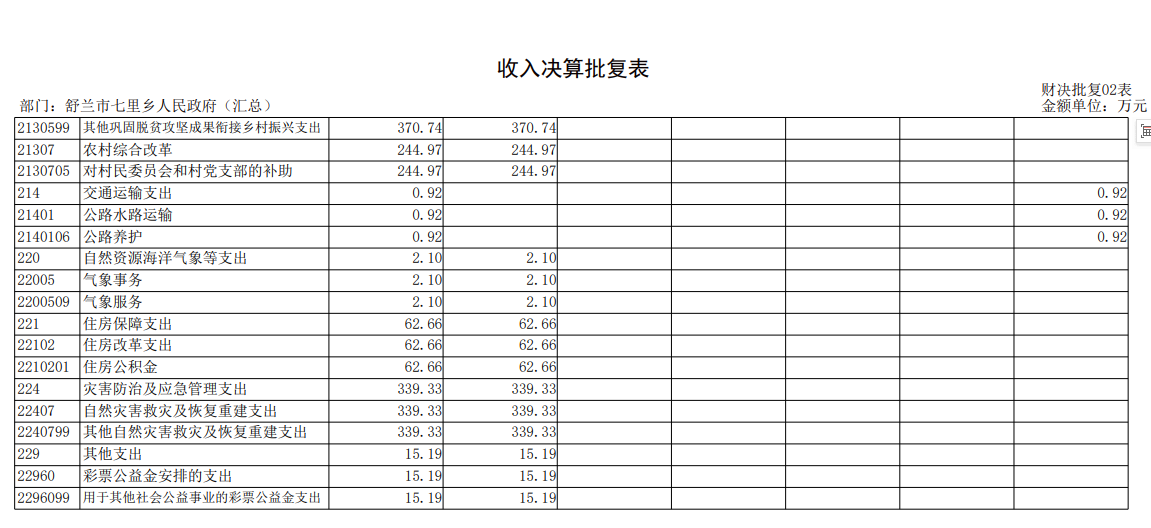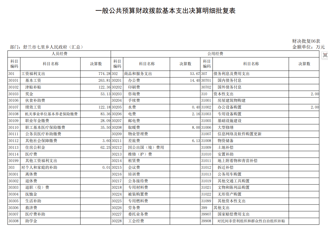 | 标 题: | 2024年度舒兰市七里乡人民政府部门决算 |