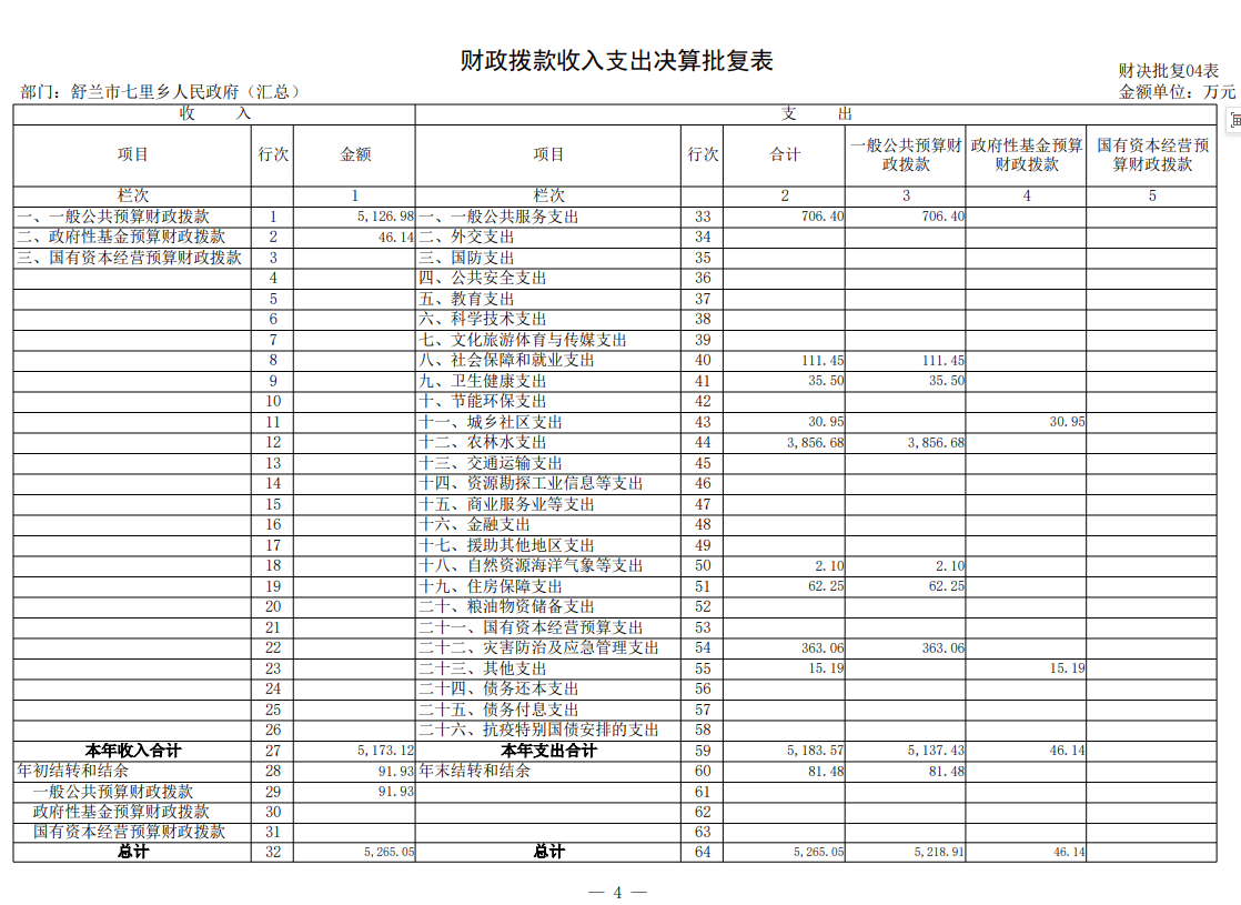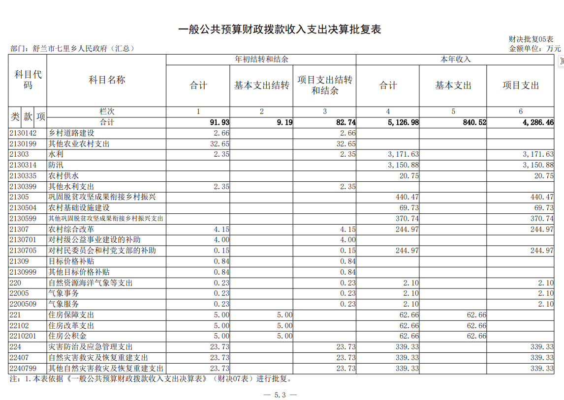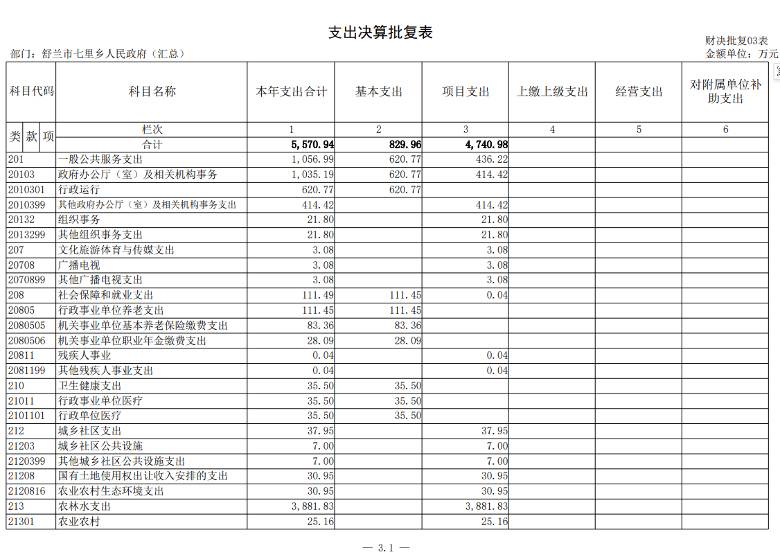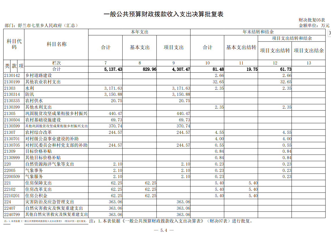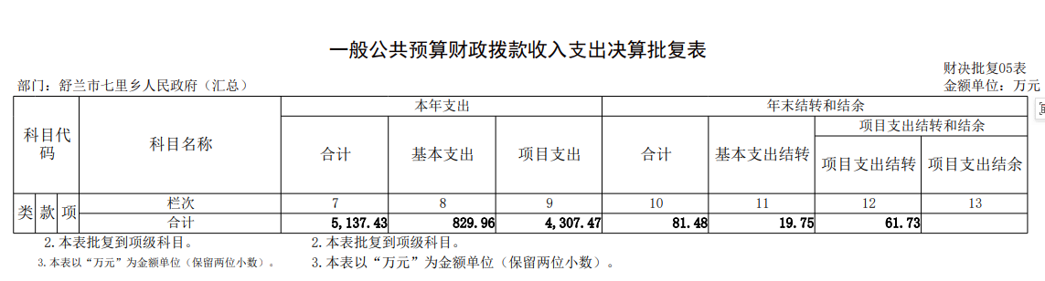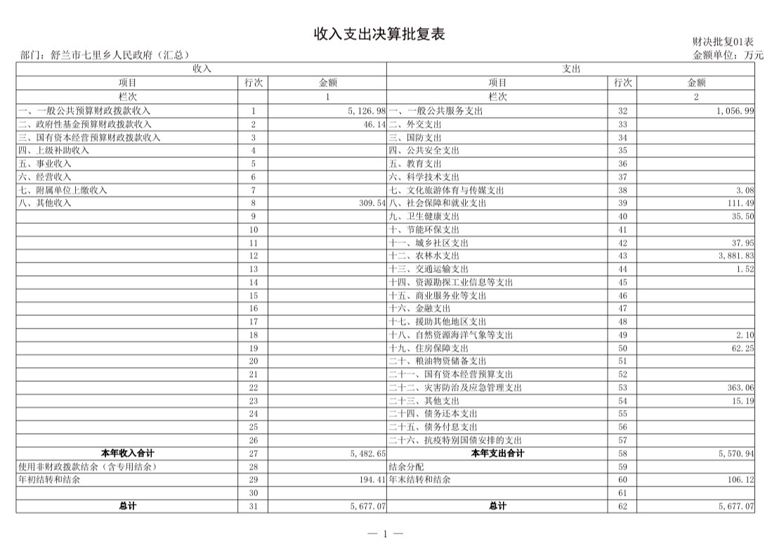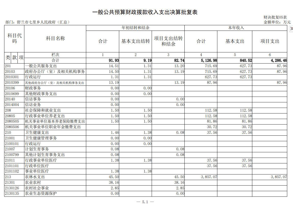 | 标 题: | 2024年度舒兰市七里乡人民政府部门决算 |