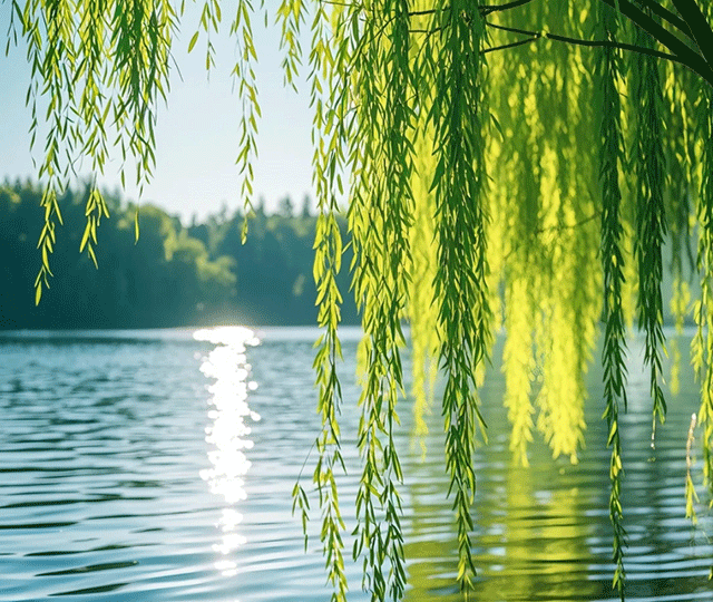 垂柳(别名水柳),落叶乔木。树皮灰褐色,小枝细长,下垂,单叶互生。垂柳在吉林地区栽植广泛,历史较长。喜光,耐寒,耐水湿,萌芽力强,根系发达,生长快。其枝条细长柔软下垂,树姿优美,常植于河、湖边点缀园景或作孤植树,亦可作行道护堤树等,是吉林市雾凇景观的主要载体。垂柳象征优美和谐,欣欣向荣。