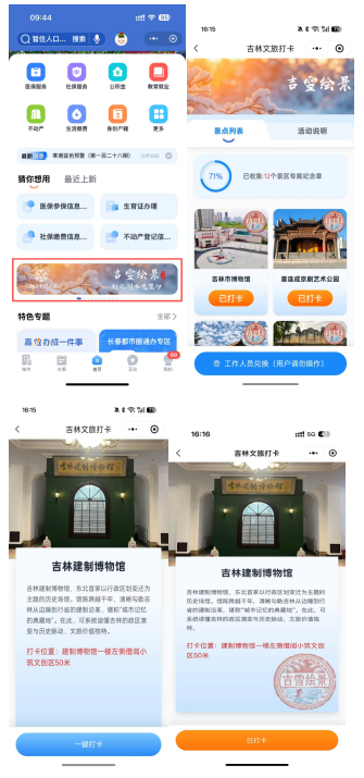 近日,市政数局与市松花湖管理局联合,依托“吉事办”移动端上线“松花湖冬季旅游打卡集印”功能,以智慧文旅新体验,吸引广大市民和游客深度探索吉林市冬季魅力,推动冰雪经济蓬勃发展。数字化赋能,开启冰雪畅游新体验。本次功能升级的核心,是将传统的旅游打卡与便捷的政务服务移动平台相结合,打造线上线下联动的趣味互动新模式。线下在景点可领取打卡册,在指定位置进行线下盖章集印;线上到景点制定打卡范围后,拿出手机打开“吉事办”,动动手指即可完成打卡,收集精美的电子印章。