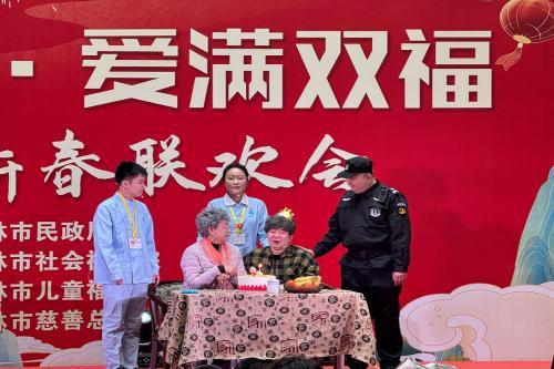 春启新程,爱暖人心。为深入践行民政为民、民政爱民工作理念,切实关怀社会福利机构老幼群体,传递党和政府的温暖与关怀,2026年2月6日上午,吉林市民政局在市社会福利院综合楼举办“感恩筑梦·爱满双福”2026年新春联欢会,用温情与欢乐为两院老幼送上新春的美好祝福。活动伊始,市民政局领导班子、爱心企业和社会组织代表们前往市社会福利院、市儿童福利院开展探望调研。两院负责人详细介绍了机构运营现状、老幼生活照料细节,各位代表关切询问在院长者和孩子们的身体状况、生活需求,一句句暖心的问候、一个个关切的眼神,化作最实在的温暖,让老幼群体切实感受到来自民政系统和社会各界的深切关爱。