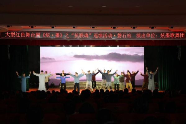 图为磐石市第二实验小学大型舞台剧《炫·墨》之抗联魂现场
