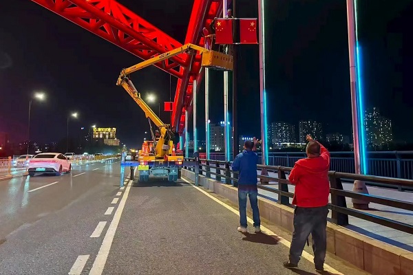 整治中,执法大队坚持“全面覆盖、长效管理”原则,针对辖区重点路段、主次干道、背街小巷及农贸市场周边等人员密集区域,加强街面巡查执法与管控力度,实行 “即查即清、立查立改” 闭环管理,精准整治占道经营、流动摊贩、乱堆乱放、临时促销设点等问题。同时,执法大队开展国旗悬挂工作,采用“夜间错时作业”模式,在江湾大桥、滨江中路沿线等区域累计悬挂国旗 288 面,营造国庆佳节浓厚氛围。