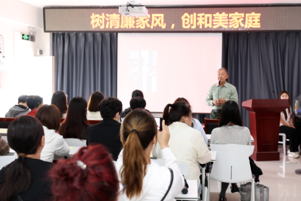 本次宣讲特邀全国文明家庭、全国书香之家代表刘锦辉老师作专题分享。他结合磐石红色文化资源,通过老一辈革命家的家风故事,生动阐释清廉家风的重要性,增强大家廉洁修身、廉洁齐家的意识。同时,围绕互敬互爱、孝老爱亲、邻里和睦等主题,分享家庭沟通技巧,并通过“最美家庭”的日常故事,展现清廉家风滋养下的和美生活。