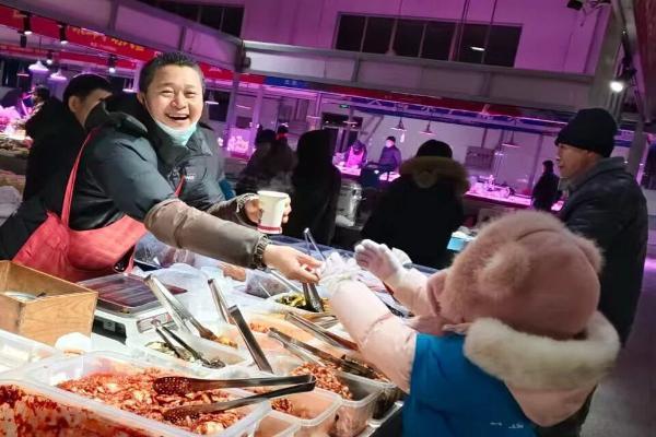 相较于其他岗位,东北亚农产品批发市场的工作人员常年遵循“昼伏夜出”的作息规律,凌晨正是他们工作最繁忙的时段,刺骨寒风中的坚守更显艰辛。小志愿者们将饱含心意的姜茶逐一递到工作人员手中,用稚嫩却真诚的行动传递关怀。在送姜茶的过程中,小志愿者们静静倾听着工作人员的心声,了解到他们为保障城市生鲜供应,每天凌晨便起身到岗,在寒风中装卸货物、整理摊位的不易;也知晓了他们虽工作辛苦,但看到市民能买到新鲜食材时便倍感满足的朴实心愿。