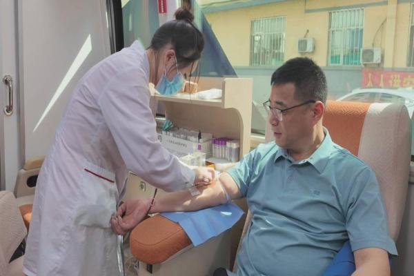 图为无偿献血现场