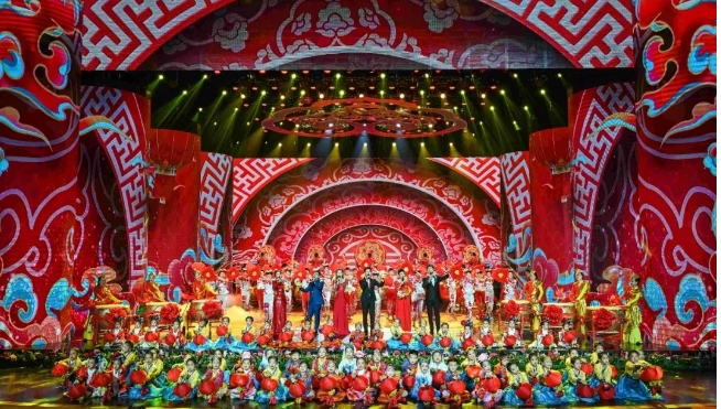 整场演出围绕“振兴潮涌新江城”主题展开,通过“大东归来”“古城新姿”“文旅炫彩”“大江春潮”四个篇章循序渐进演绎,播放《福佑大东》《幸福年》《不如见面》视频短片生动讲述,彰显“同舟共济、激流勇进”的城市精神,展现新时代新江城绽放的新活力、城乡的新面貌、生活的新变化、发展的新动能,凸显了市委、市政府团结带领全市人民一起奋斗、一道前进持续迈出振兴发展的坚定步伐,表达了全市上下努力建设独具辨识度、更有影响力的新时代省域副中心的坚定信心和必胜决心。