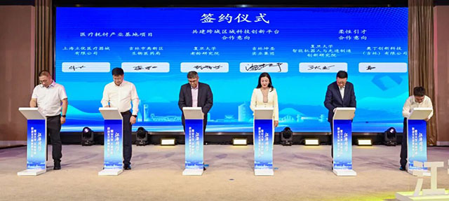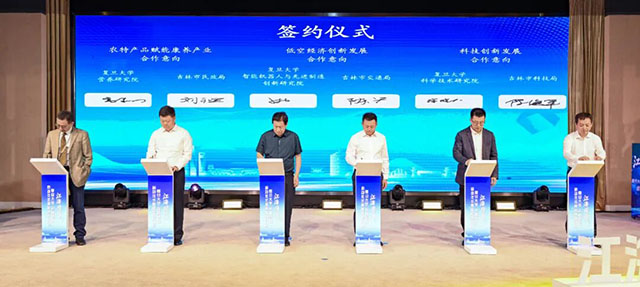 复旦大学相关科研团队与吉林市相关合作单位签署重点项目合作意向。