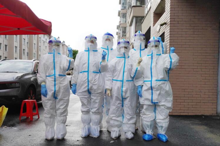 在一次采样后,医疗队员拖着疲惫的双腿从七楼下来,刚刚走出楼道,楼上忽然传来一声稚嫩的童音:“阿姨加油!”