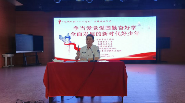 为深入推进依法治教,增强学生法律意识和自我保护能力,养成遵纪守法的良好习惯。9月17日,龙潭区关工委、教育局联合开展了“法治进校园,护航助成长”普法宣传教育活动。吉林市道德模范协会会长、吉林市强制隔离戒毒所退休警官吴国龙同志应邀到龙潭区实验小学,为师生作了题为《争当爱党爱国、勤奋好学、全面发展的新时代好少年》的普法讲座。