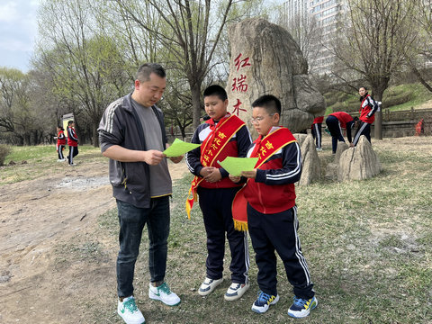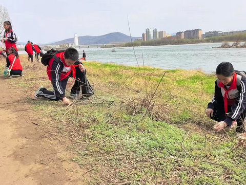 (文图/兰谱欣)4月17日,吉化六小组织五、六年级学生代表走进吉林市红瑞木园开展“我为大自然添抹绿”主题活动。学生们通过清理垃圾、宣传河长制等形式,以实际行动守护生态环境。学生们分组在园区步道、草坪及景观区捡拾纸屑、塑料瓶等废弃物,并进行分类处理。两小时内共收集垃圾20余袋,分类为“可回收物”与“其他垃圾”。结合红瑞木园临近松花江的地理特点,学生们化身“小河长”,向游客发放宣传单,讲解河长制意义及吉林市水污染治理成效,并提出“增设垃圾桶”“加强巡逻提示牌”等建议,赢得游客点赞。此次活动将环保教育从课堂延伸至实践,通过“行走的课堂”,将环保信念深植学生心中,深化了学生的责任感。