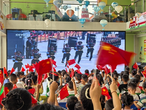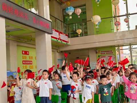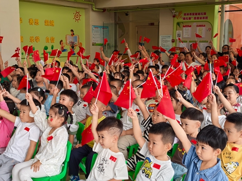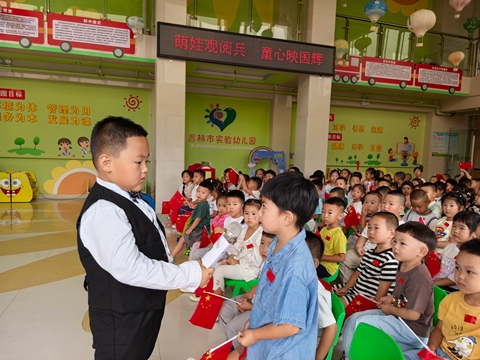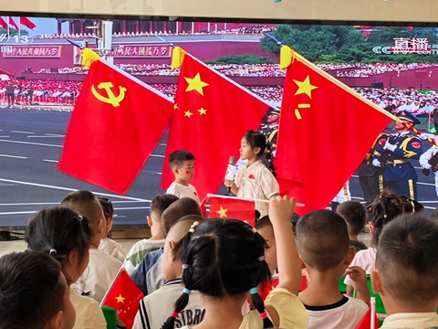 9月3日,吉林市实验幼儿园组织全体师生开展“萌娃观阅兵,童心映国辉”观礼活动。师生齐聚一堂观看阅兵式直播。活动中,园长动情的讲解、小记者与观众积极的互动,让孩子们感受到了国家的强盛,萌发了浓烈的爱国情感,集中观礼活动让爱国主义启蒙教育更生动地走进幼儿生活。
