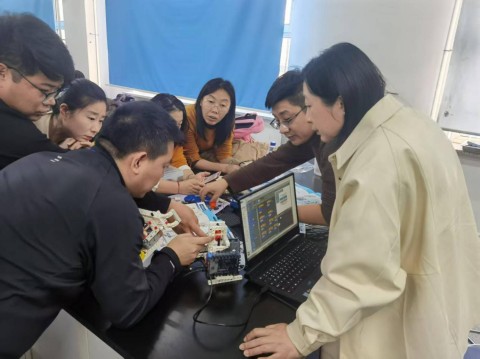 两天的研讨活动内容丰富,形式灵活务实,既有来自中国教育科学院、东北师范大学、北京市海淀区教师进修学校等国内STEM教育研究头部单位的专家学者带来的专题讲座,也有STEM实践操作工作坊等互动环节。市教科所发展中心两位主任带领吉林市参会教师走进STEM课堂,亲身参与了“发射器制作”实操项目。在专家的现场指导下,教师们分组协作,从方案设计、程序编程、动手制作到测试改进,完整体验了STEM项目的实施流程,在实践中深化了对STEM教育"做中学、学中创"理念的理解,掌握了跨学科课程设计的基本方法和实操技巧。