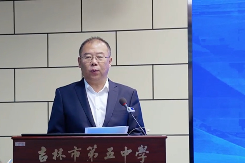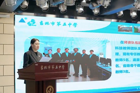 开幕式上,吉林市第五中学校长刘阳致欢迎辞,详细介绍了学校在信息科技教育方面的探索成果。