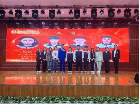 会上对学校2025年高职分类考试情况作了全面总结并为本科上线的四名学生颁发荣誉奖励。今年,学校对口考生在电子信息类、公共管理与服务类、装备制造类三大领域里,本科突破重围,26人中,4人本科过线,过线率达15%,其中徐诺同学更是以全省第二的优异成绩脱颖而出;高职单招文化考试也全面凯旋,所有考生均成功跨越职业技能测试资格门槛。