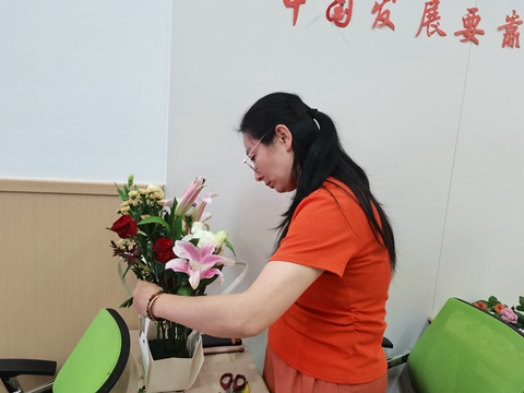 作为课程的主讲教师,吉林省城市建设学校园林教研室的刘田老师拥有丰富的园林艺术教学经验和实践功底。在课堂上,她没有采用生硬的理论灌输,而是从认识花材、色彩搭配、造型设计等基础环节入手,结合生活场景讲解插花技巧,手把手指导学员修剪枝叶、调整花材位置。面对零基础的学员,她总是耐心解答疑问,鼓励大家发挥创意:“插花没有标准答案,重要的是融入自己的想法,让作品体现出生活的美好。”在她的指导下,原本略显生疏的职场人渐渐找到了窍门,从“不知如何下手”到“能独立完成精致作品”,每一次进步都充满了成就感。