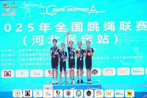 10月12日至13日,由国家体育总局社会体育指导中心、中国毽球跳绳协会主办的2025年全国跳绳联赛(河北保定站),在保定市体育馆圆满落幕。吉林市松江东路小学校赵一桐、高仟洢、王馨月、孙艺芯、苏约翰五人代表吉林市参赛,共斩获7金4银4铜的优异成绩。