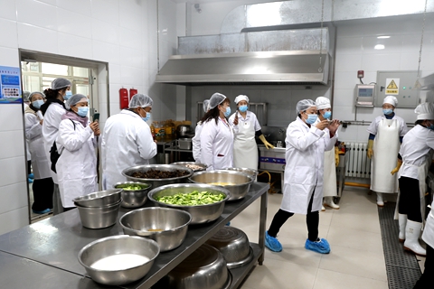 活动伊始,家长代表深入食堂操作区,实地参观食材库、粗加工间、烹饪区及留样间等区域。食堂负责人详解“明厨亮灶”运行机制,现场展示食品安全检测报告与供应商资质文件,让食材溯源、食材加工、清洁消毒流程全程“透明化”。