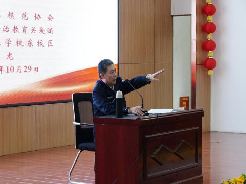 (文/林山 图/张铭信 高玮晗)为深入推进青少年法治宣传教育,增强学生的法治观念、思想道德建设和自我保护意识,全面提高学生的法治素质,防治校园欺凌事件发生,营造平安、和谐、文明、学法、知法、懂法、守法的校园环境,10月29日,吉林机电工程学校东校区安全处邀请到了吉林市道德模范协会会长、吉林市关工委法治教育关爱团副团长、吉林市强制隔离戒毒所退休警官吴国龙同志为学生做法治安全知识专题讲座。