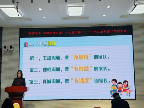 (文/韩朝阳 图/张英贤)为提升家庭教育水平,探寻家校沟通的艺术,11月19日,吉林市第二十三中学举办了“家校携手,共建和谐校园”之“家校沟通的艺术”家庭教育大讲堂。本次活动特邀校学生发展中心主任杨卫红,为与会家长带来了一场启迪深思的育儿智慧课。