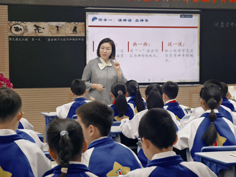 精彩的讲座之后,两节高质量的现场观摩课让参会教师直观感受项目式习作教学的魅力。长春市净月高新技术产业开发区慧泽学校蔺雪楠老师执教公开课《盘古开天地》,以神话故事为载体,融入项目式学习元素,在“招募小小宣讲员”项目中,以“读神话,品神奇”“讲神奇,讲得体”两个任务为驱动,学生通过品词析句,句子训练表达及多种形式的朗读等形式感受神话魅力,提升文本解读与创意表达能力。吉林市第一实验小学孔瑜老师带来《我和____过一天》习作指导课,在“支架引路,搭建故事框架”“方法建构,让想象更丰盈”两项任务中,通过创设情境、范例引路、小组合作等方式引导学生打开想象之门,掌握童话习作的构思及表达技巧,展现了项目式习作教学的趣味性与实效性。
