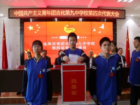 大会进入第四届委员会委员选举环节。全体代表严格按照《共青团吉化九中第四次代表大会选举办法》,以无记名投票、差额选举方式进行民主投票。过程公开透明、程序规范,充分体现了民主集中制原则。经过民主投票,大会选举产生了共青团吉化九中第四届委员会。选举计票期间,学生代表深情朗诵《青春的火炬永不熄灭》,以艺术形式展现了化九中学子昂扬向上的精神风貌,为庄严的会议增添了青春的活力与温度。随后大会作关于通过第三届委员会工作报告的决议(草案)。与会代表一致认为,工作报告总结成绩实事求是,规划未来目标清晰、路径可行,大会全体代表审议并通过了该项决议。会上宣读了《挺膺担当建新功砥砺奋进新征程》倡议书,向全体团员青年发出号召:要坚定理想信念,强化使命担当;要勤于学习钻研,拓展知识视野;要提升综合能力,锤炼过硬本领,努力在奋斗中书写无愧于时代、无愧于祖国的青春篇章。