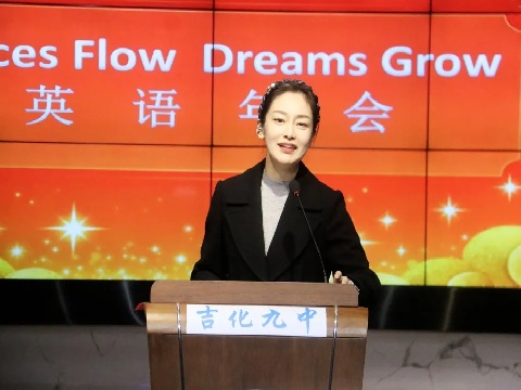 (文/刘娜 图/孙伟华 赵静)吉化九中教育集团以“Voices Flow Dreams Grow”为主题的英语年会于12月19日启幕。这场盛会由英语教师精心筹备,七年级学子登台献艺,既是展现英语素养的舞台,也是家校共育理念的实践,更深度践行《英语课程标准》,融入核心素养培育目标。集团兄弟校——吉化三中、吉化六中的校领导、教师及家长代表齐聚现场,共赴这场语言与素养融合的盛宴。