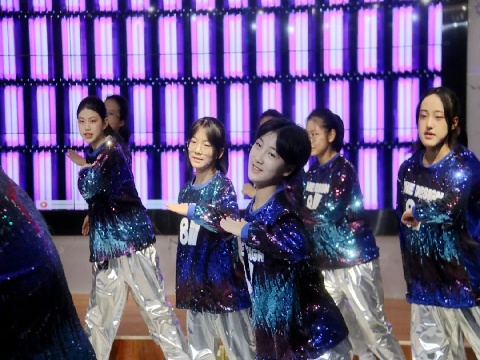语言类节目同样异彩纷呈。英语课本剧轮番上演,同学们化身剧中角色,一口流利口语搭配惟妙惟肖的神态,让原本静态的课本文字瞬间焕发生机;课文背诵环节则尽显团队默契,各班学子以小组为单位齐声背诵,发音整齐划一、语调铿锵有力,情感更是饱满真挚,洪亮的诵读声回荡全场,尽显扎实的语言功底;个人演讲环节好戏连台,接连掀起全场高潮;英文自我介绍演讲则尽显少年风采,学子们站姿挺拔、谈吐自信,用流利的口语分享成长故事,一名学子以英文慷慨朗诵《沁园春·雪》,字字铿锵、气势磅礴,将词中“山舞银蛇,原驰蜡象”的雄浑意境演绎得淋漓尽致,展少年豪情;另一名学子则以家乡雾凇为主题展开英文演讲,用生动的语言描绘松花江畔“琼枝玉树,冰清玉洁”的盛景,从雾凇的形成原理讲到冬日赏凇的独特乐趣,带领观众沉浸式领略北国江城的冬日限定之美;歌伴舞节目活力满格,同学们身着亮眼的演出服,踏着明快的节拍翩然起舞,灵动的舞步与清脆的英文歌声完美契合,时而舒展手臂如振翅的雏鹰,时而跳跃旋转似初绽的春蕾,将现场热烈氛围一次次推向高点。压轴环节,七年一班同学合唱《Try Everything》,明快旋律点燃热情,传递出不惧失败、勇于尝试的信念。