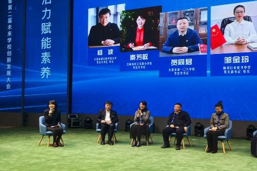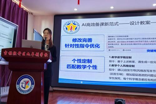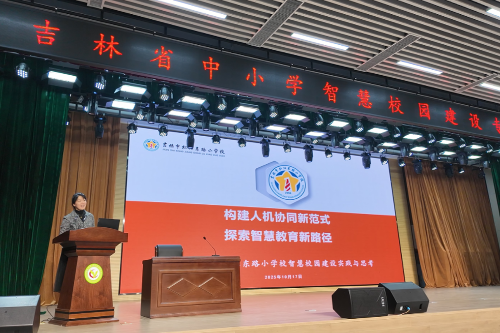 平台展示互鉴,输出基层实践经验。秦芳敏书记在吉林省教育厅主办的“中小学智慧校园建设专题研讨班”上,代表吉林市以《构建人机协同新范式 探索智慧教育新路径》为题作经验交流,为全省教育数字化转型提供基层参考。在吉林省教育科学院主办的“未来学校创新发展大会”上,秦书记围绕“人工智能赋能学校高质量发展”在学术论坛环节进行了主题分享。学校先后接待省电教馆、市教育学院AI主题调研,通过课堂开放、案例汇报等形式展示了学校的成果,赢得了好评。