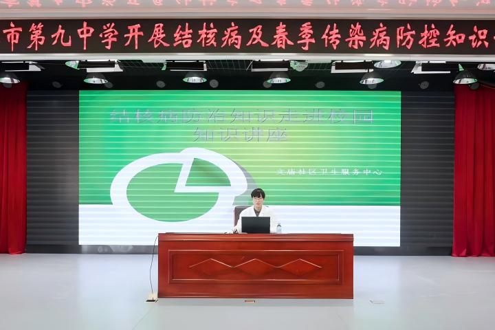 (文/刘海娇 图/王闻多)3月24日是第 31 个世界防治结核病日,为落实“全面行动 全力投入 全民参与 终结结核”主题宣传要求,切实加强校园公共卫生安全,提高师生对结核病及春季常见传染病的防控意识与自我防护能力,3月18日,吉林市第九中学邀请文庙街道社区卫生服务中心执业医师马天文走进校园,开展专题健康知识讲座,用科学知识武装头脑,以有效防护抵御风险。