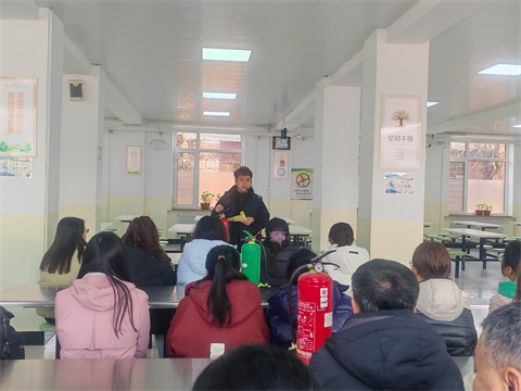 演练前,安全处负责人围绕食堂日常消防安全管理要求、干粉灭火器使用方法、火灾疏散逃生技巧及火警报警流程进行系统讲解,明确操作要点、安全注意事项及各岗位消防安全职责。