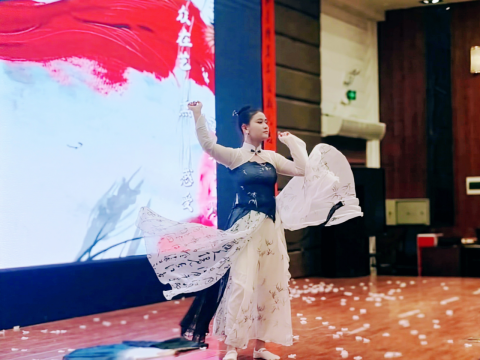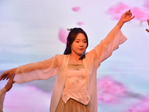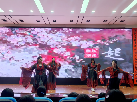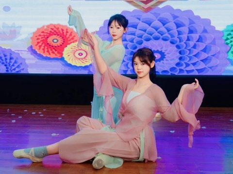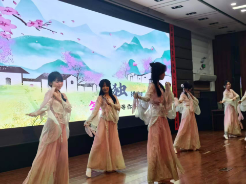 舞台上,同学们以国风舞蹈为核心风格,选曲多取材于《万疆》《木兰花》《霍元甲》等承载民族情怀的作品,在翩跹舞姿里传递文化自信与家国情怀,让民族精神在青春律动中深深扎根。不少参赛队伍的背景音乐视频由学生自主用 AI 创作,视频里还融入了同学们原创的诗歌作品,将文学创作与数字技术巧妙结合,既展现了灵动的思维创意,也锻炼了跨学科的实践能力。舞蹈中的跳跃、旋转、托举等动作,考验着同学们的肢体力量、协调性与耐力,大家在反复排练中磨砺意志、突破身体极限,把坚韧不拔的体育精神刻进了每一个舞步里。从古典舞的温婉雅致到国风舞的大气磅礴,同学们用肢体语言诠释艺术之美,在旋律与动作的交融中提升审美感知力,让美育的养分浸润心灵。参赛学生亲手设计制作演出服饰,志愿者们全程参与场地布置、道具筹备与赛事服务,还有同学自主设计制作评分奖牌,在动手实践中培养了劳动意识与责任担当。