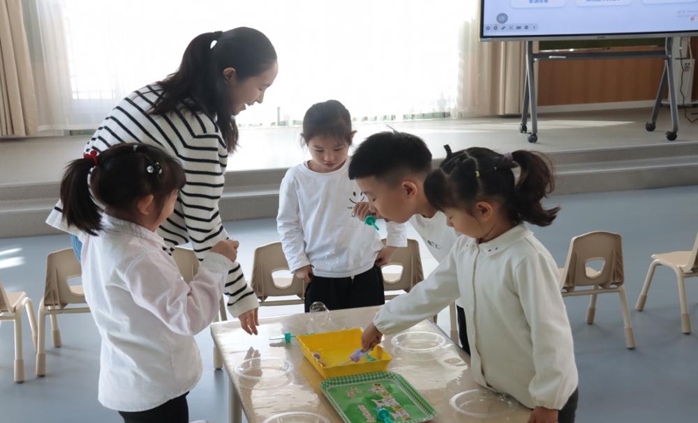 优质活动展示环节,来自市实验幼儿园、松江东路小学幼儿园、昌邑区实验幼儿园、永吉县实验幼儿园的名优教师,联合丰满区乡村骨干教师,聚焦科学领域进行教学展示活动,活动覆盖大、中、小班,呈现《有规律的格子布》《神奇放映机》《糊涂国王摸月亮》《和AI一起认四季》等8节优质集体教学活动。城乡教师同台展示、各展所长、互学互鉴,充分彰显游戏化教学的内涵与价值,为乡村教师提供了可复制、可借鉴、可推广的教学范式。