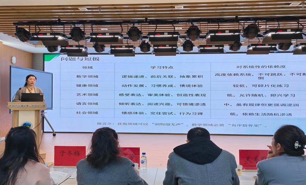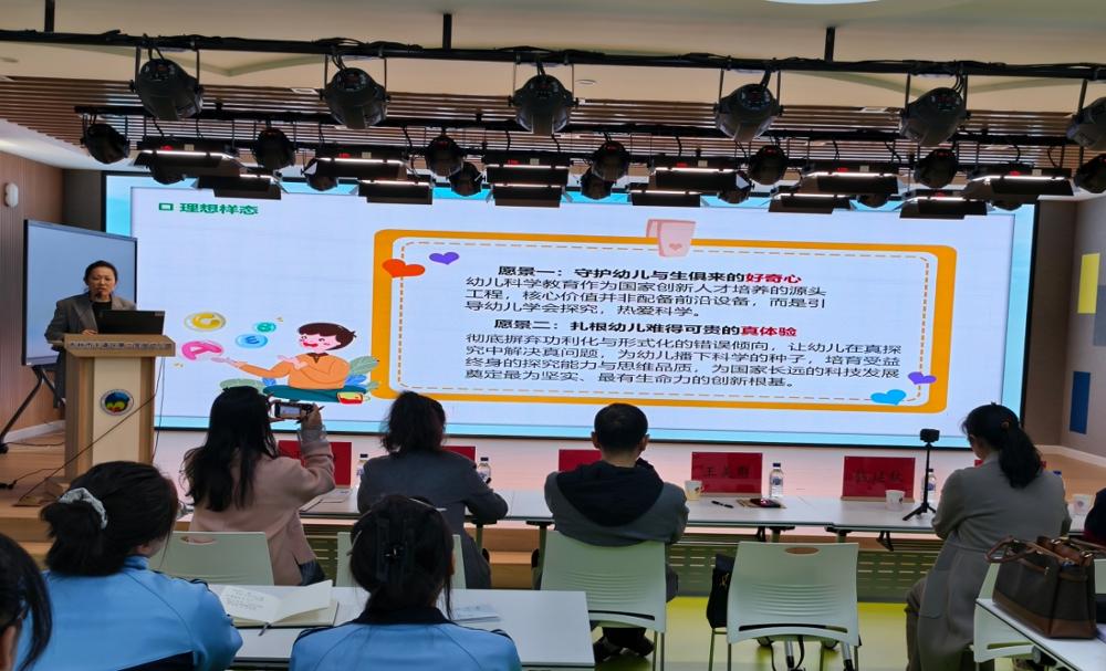 专题研讨与专业引领环节,教研员与园长们围绕幼儿科学学习特点、游戏化教学、生成性活动设计等核心内容,结合《幼儿园教育指导纲要(试行)》《3—6岁儿童学习与发展指南》精神,从儿童本位出发,引导教师反思教学行为、优化支持策略。通过理念解读、案例剖析与互动研讨,推动先进教育理念转化为教师具体教学行为,从而实现专业素养与保教能力的迭代提升。