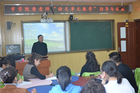 (文图/陈巍巍)为促进学校语文教师专业成长,提升语文教学质量,4月9日,吉林市教育学院唐德喜老师受经开区双吉小学校长吕晶邀请莅临双吉小学为全体语文教师做“语文单元教学指导与讲座”。