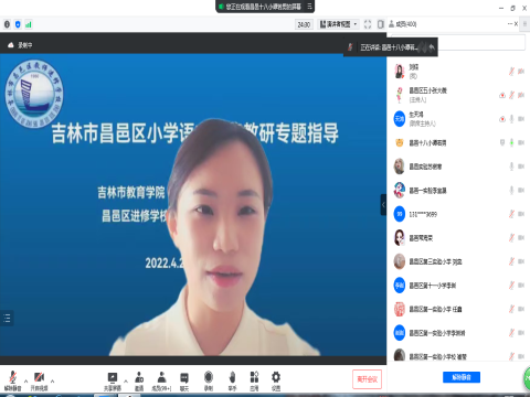 (文图/郭锦秀 生天鸿)为充分发挥教研员和骨干教师专业引领、示范作用,更好地落实“双减”政策,提高线上教育教学质量,近日,昌邑区教师进修学校小学部,结合疫情期间各校线上教学实际,利用腾讯会议直播间面向吉林地区组织开展了吉林市“昌邑区小学语文网络教研专题指导” 教研活动。市教育学院小学教研室唐德喜副主任,昌邑区进修学校梁琦校长、郭锦秀副校长,市直属小学、各县区业务领导、教研员、骨干教师400余人参加了活动。