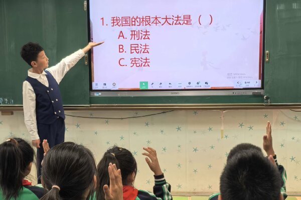 丰满区东山实验学校以多形式开展宪法宣传教育活动,让法治精神浸润校园。庄严的升旗仪式上,以国旗下讲话为载体,从学生视角宣讲如何遵守法律法规,倡导全体师生学习、遵守、维护宪法;校园广播站同步发力,广播员们通过声音传递宪法知识,号召同学们以“立志向、修品行、练本领”为目标,遵纪守法、勤学笃行,为中国梦时刻准备;各班召开主题班会,让学生在互动中深入了解宪法、感受宪法尊严。