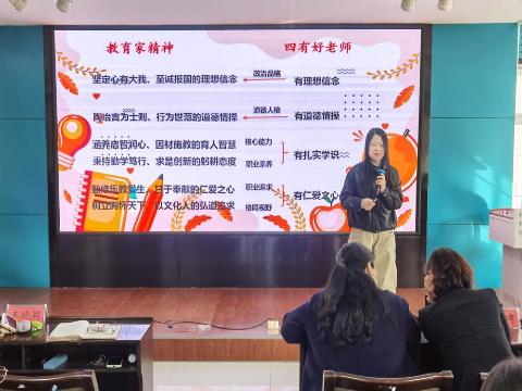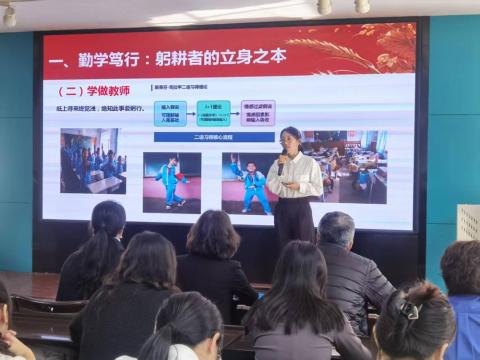 本次培训精心设计两大核心环节,首个环节为教育家精神宣讲。由昌邑区第十一小学校韩东雪老师作为学员代表主讲。她以自身教育历程为脉络,从初入教坛时“学做教师”的初心摸索,到深耕课堂后“用教材教”的实践突破。通过多个真实教学案例,将抽象的教育家精神具象化,让“勤学笃行”不再是口号,“求是创新”也绝非空谈。其生动的讲述引发在场教师强烈共鸣,让大家深刻感受到教育者扎根讲台、向下生长的坚守与力量。
