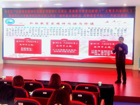 昌邑区教师进修学校副校长周毓春则以“大力弘扬教育家精神,争做立德树人大先生”为主题,从教育家精神六个维度,到立德树人的时代要求,再到“大先生”成长路径与名师工作室“引领成长、共享资源”的使命,为教师们明晰了育人方向,呼吁大家将教育家精神内化于心、外化于行。